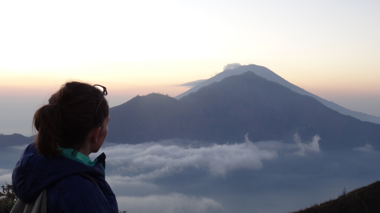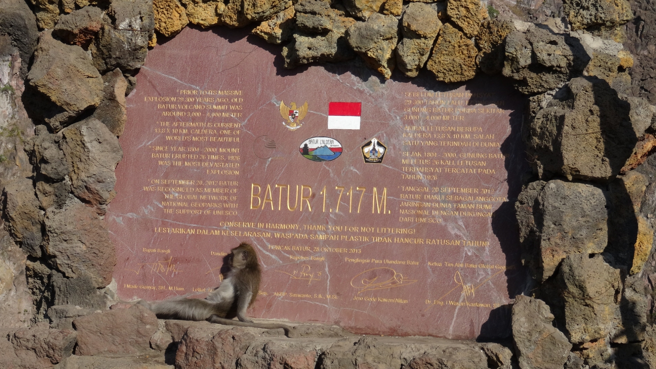 Oriane prend ensuite la pause devant la plaque du Mont Batur