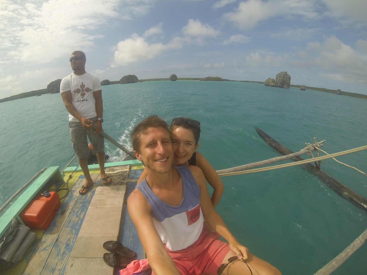 On a remonté en pirogue (moyen de transport traditionnel des pêcheurs Kuniés, et tout ceci au vent !) la célèbre (beaucoup de photos de la Nouvelle Calédonie viennent de cette baie) baie d'Upi, avec ses nombreuses roches de coraux perdues dans les eaux limpides...et ses nombreuses tortues à grosses têtes.